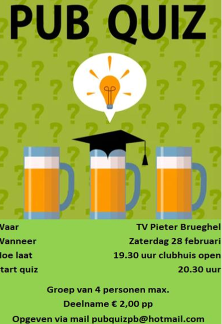 Op 28 februari is het weer tijd voor onze jaarlijkse pubquiz!
